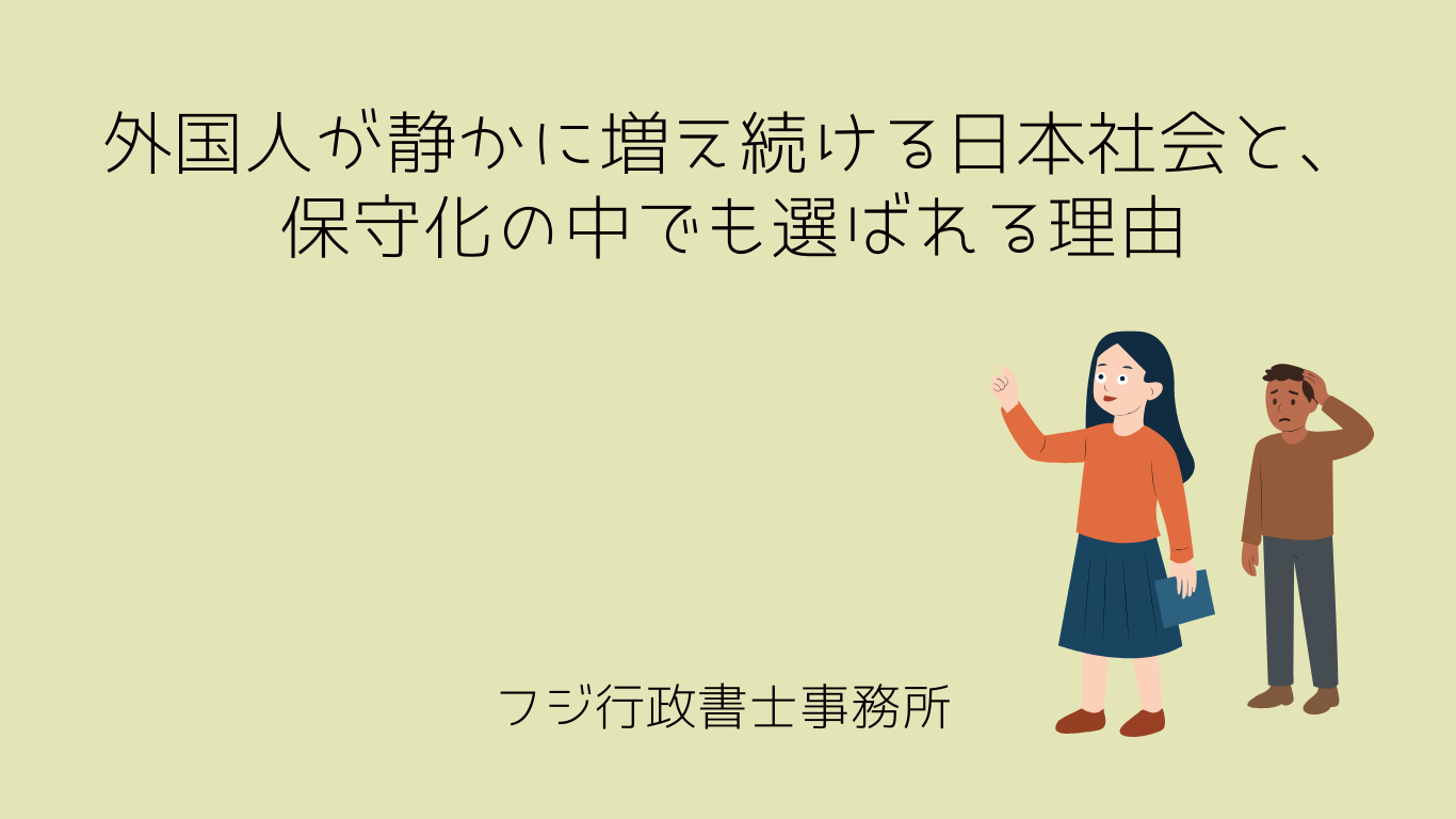 外国人住民の増加は、日本社会の変化を映し出す鏡であり、新しい可能性を示すサインでもあります。保守的な空気が強まる時代だからこそ、日本の魅力や強みを見つめ直し、外国人が安心して暮らせる環境を整えることが重要です。外国人とともに地域をつくり、社会を維持していく未来の姿が、静かに、しかし確実に形づくられています。