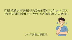 ビザ更新費用の負担者については、明確な法的義務はないものの、「原則は本人」「実務上は会社が負担することも多い」というのが現実です。しかし、どちらが負担するにしても、「どのようなルールで決めているか」が大切であり、それがなければトラブルの元になります。企業側には、雇用契約や社内ルールの明文化を、外国人本人には「自己責任」の意識と備えを。それぞれの立場で役割を理解し、円滑なビザ更新ができるよう努めることが、共に働くうえでの信頼関係につながるでしょう。フジ行政書士事務所では、在留資格の更新に関する相談や、会社との調整に関するサポートも行っております。雇用主・外国人本人いずれの立場でも、「何を準備すべきか」「どこまでサポートしてもらえるのか」不安があれば、どうぞお気軽にご相談ください。